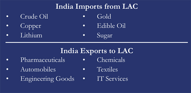 At the same time, India exports pharmaceuticals, automobiles, auto components, engineering goods, chemicals, textiles and information technology services to Latin America. Indian pharmaceutical companies play an important role in supplying affordable medicines across the region, while Indian automobile and engineering companies have established a strong presence in several Latin American markets. Indian IT companies, too, have built delivery centres and technology operations across Latin America, creating a digital bridge between India and the Americas.
