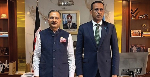 Nairobi: India’s High Commissioner to Kenya Adarsh Swaika met Somalia’s Ambassador to Kenya, Jabril Ibrahim Abdulle, discussing bilateral cooperation and regional developments.