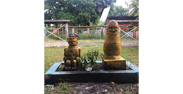 Guardians at the entrance of a Hindu temple in Martinique