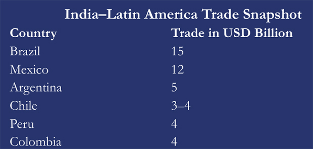 At the same time, India exports pharmaceuticals, automobiles, auto components, engineering goods, chemicals, textiles and information technology services to Latin America. Indian pharmaceutical companies play an important role in supplying affordable medicines across the region, while Indian automobile and engineering companies have established a strong presence in several Latin American markets. Indian IT companies, too, have built delivery centres and technology operations across Latin America, creating a digital bridge between India and the Americas.